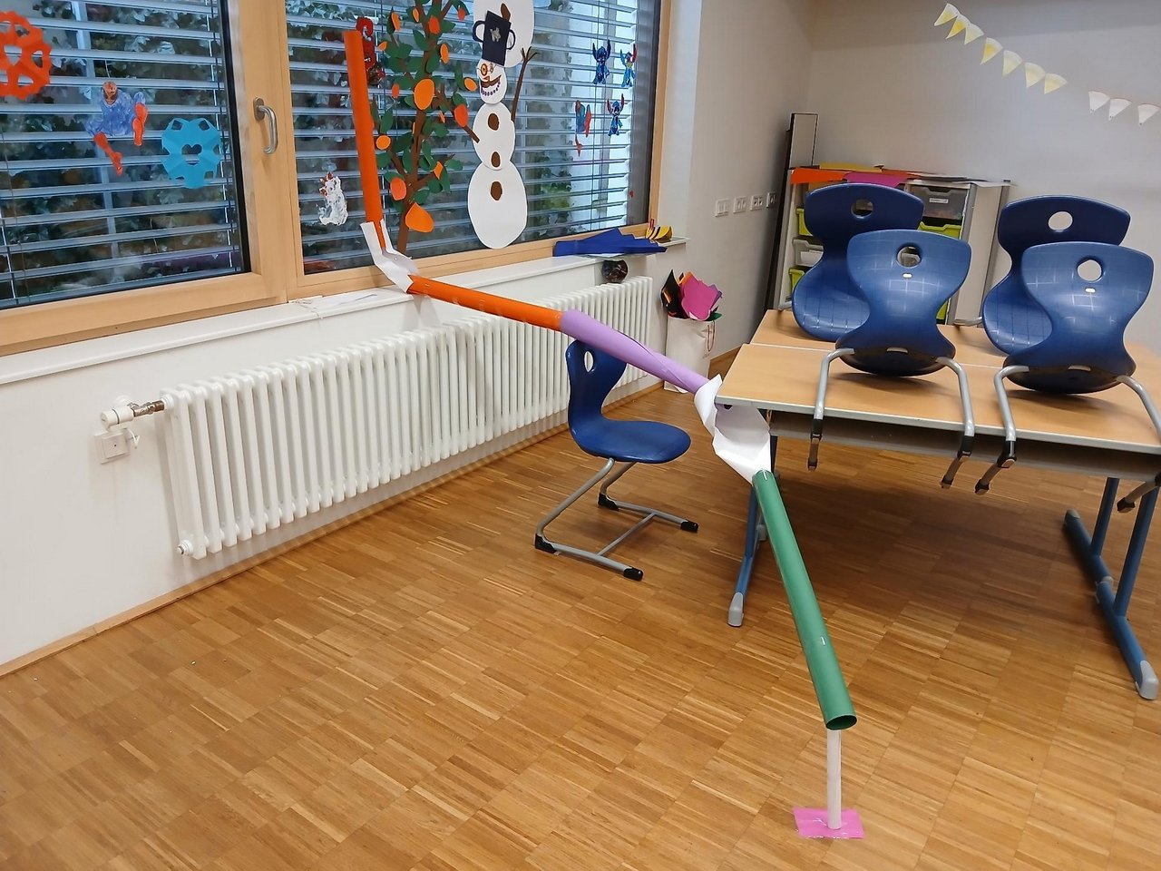 Am 18. Februar wurde es in der Ganztagsschule (GTS) besonders kreativ: Die Kinder verwandelten Papier, Tixo-Streifen und eine große Portion Fantasie in spannende Kugelbahnen. Mit viel Begeisterung und Tüftlergeist machten sie sich ans Werk und planten ihre eigenen Konstruktionen.
