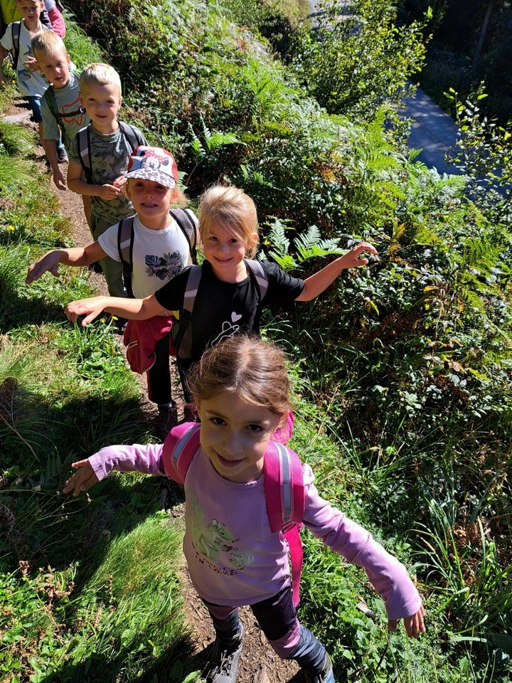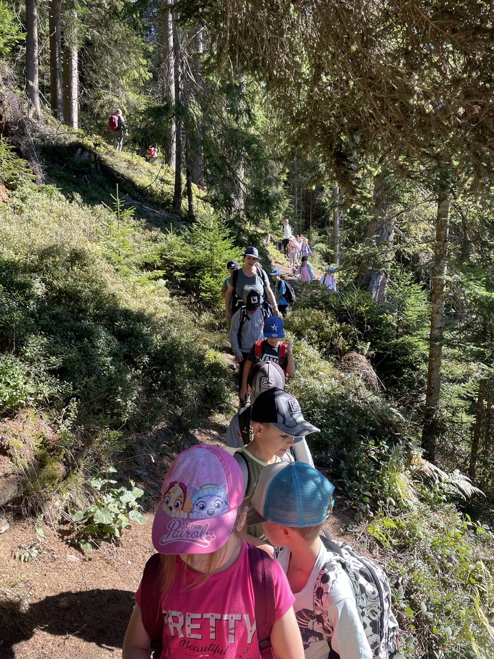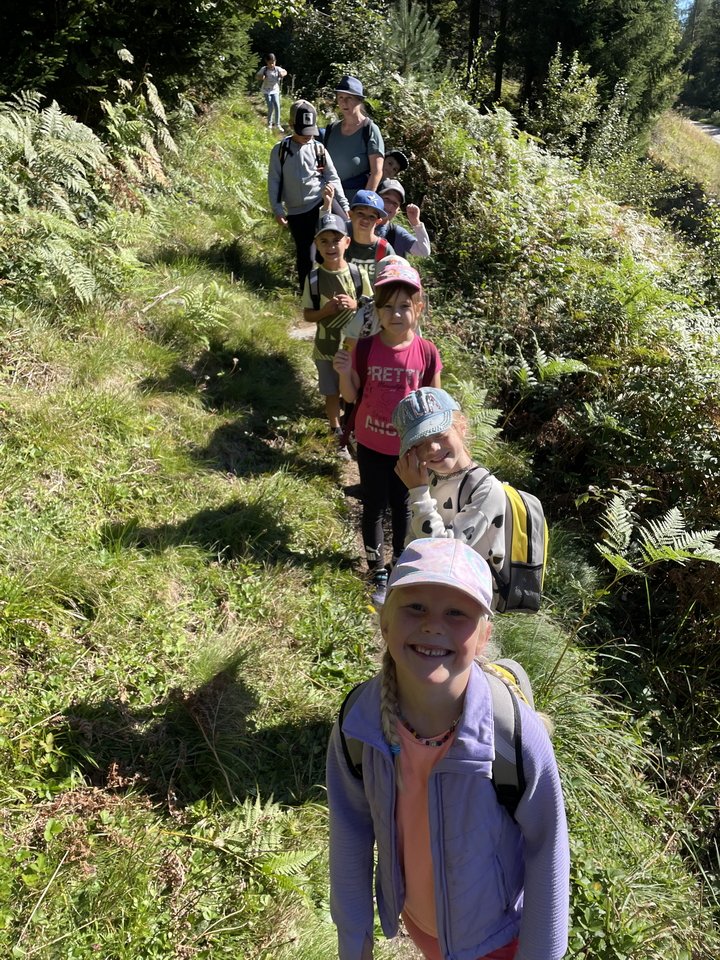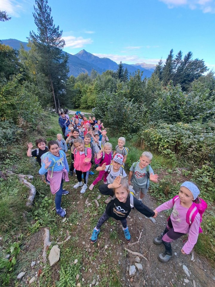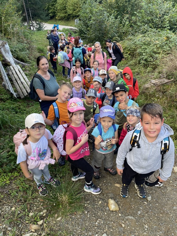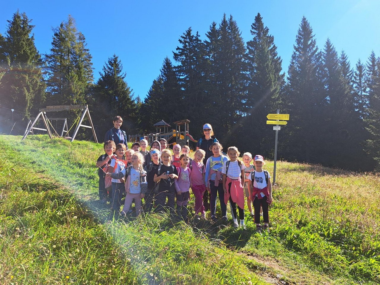 Der erste gemeinsame Wandertag der 1. Klassen führte über einen abwechslungsreichen Waldweg zur Bürgerbergalm. Nach dem Aufstieg wurde erst einmal gejausnet. Anschließend wurde der Spielplatz mit großer Begeisterung erobert – Bewegung, Spiel und Spaß standen im Mittelpunkt.