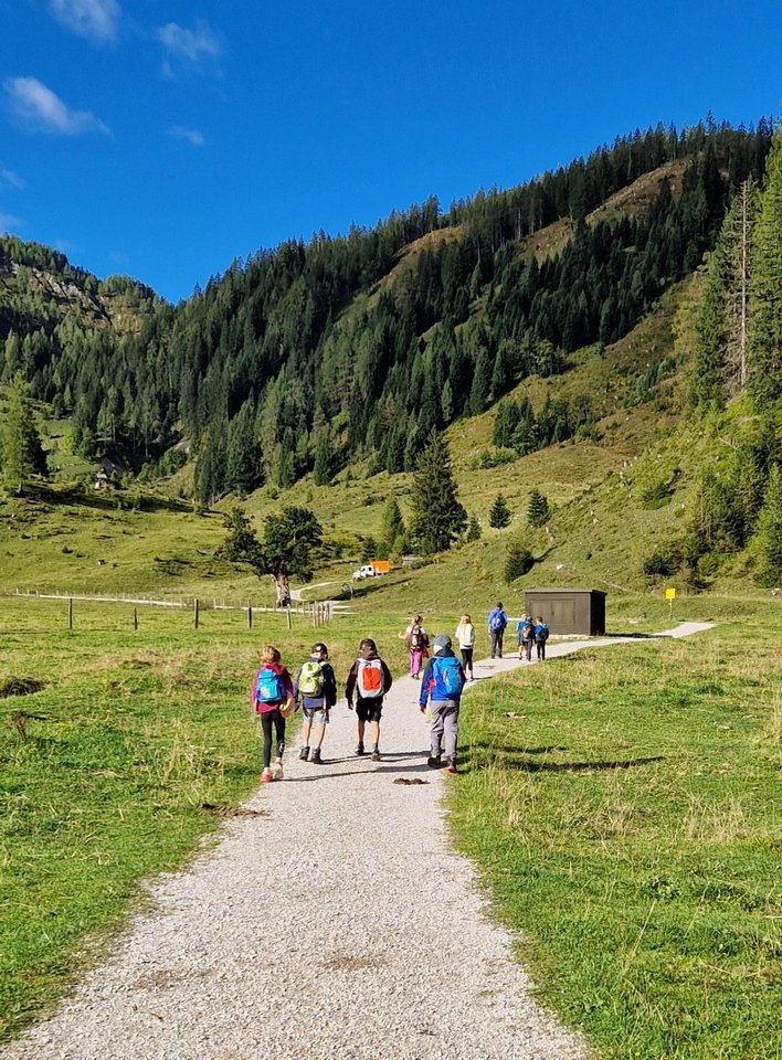 Am 16. September wanderte die 3a Klasse den Rundweg "Alles Alm" bei der Gnadenalm. Bei wunderschönem Wetter wurden die vielen Stationen begutachtet. Am besten gefiel den Kindern die Station "Alles Wasser". Es war ein gemütlicher, interessanter Vormittag!