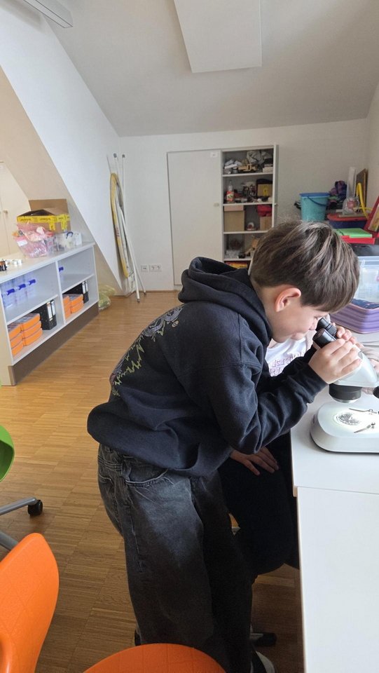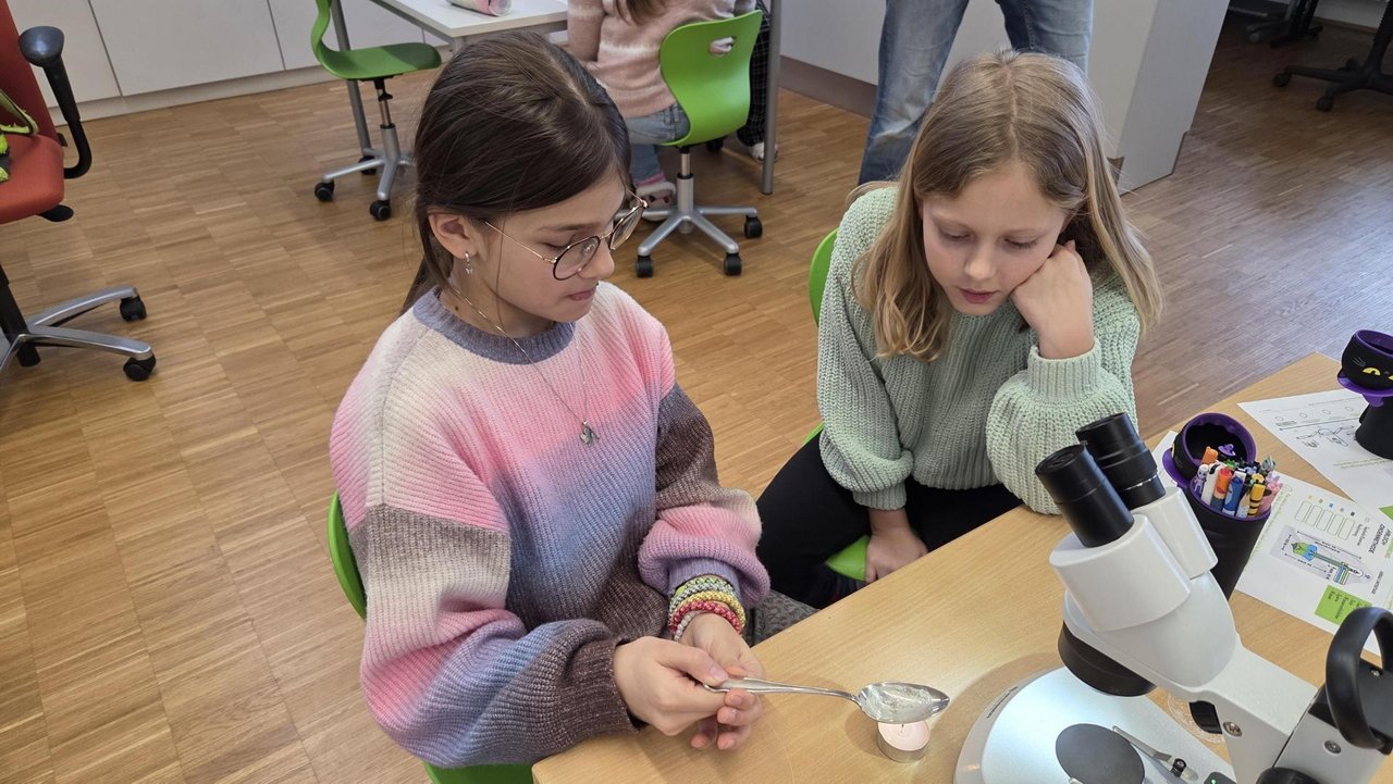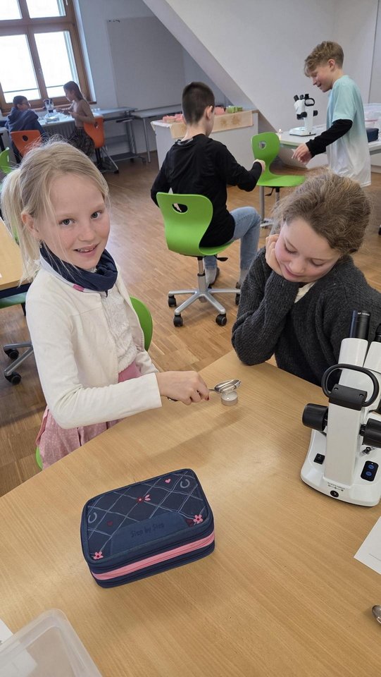 Ein besonderes Erlebnis war das Betrachten von Salz unter dem Mikroskop, bei dem die Kinder die unterschiedlichen Kristallformen entdeckten. Außerdem lernten sie verschiedene Salzarten kennen, darunter Siedesalz, Steinsalz und Meersalz, und erfuhren, wie sie entstehen. Durch eigenes Experimentieren wurde das Thema anschaulich und lebendig vermittelt.