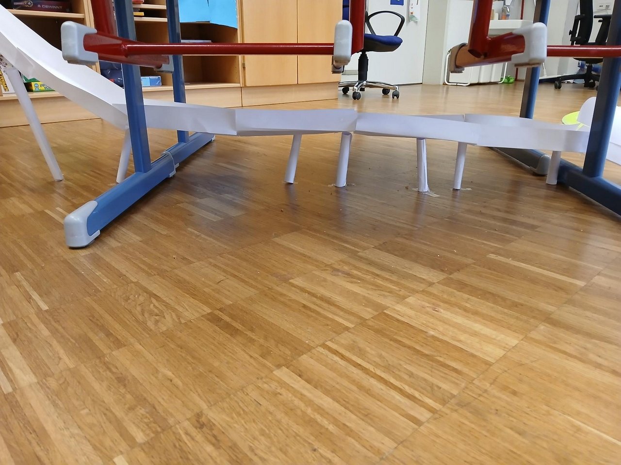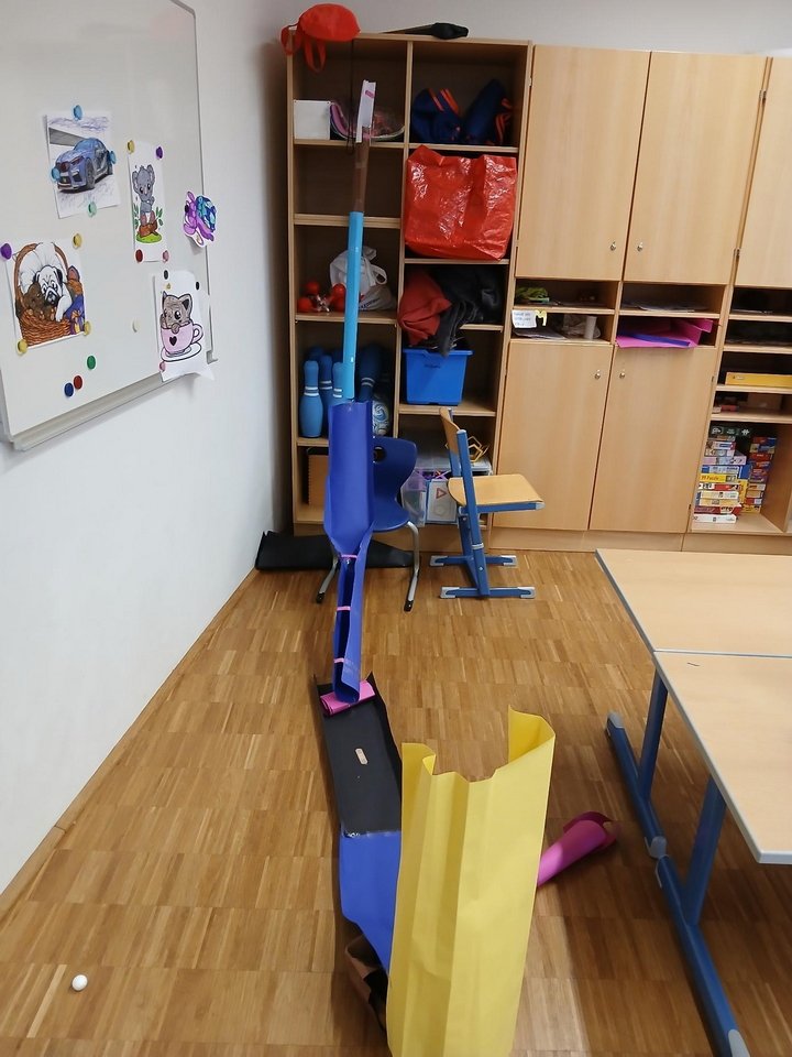 Ganz im Sinne von MINT wurde ausprobiert, überlegt und immer wieder verbessert. Wie steil darf eine Bahn sein, damit der Filzball schnell genug rollt? Welche Richtungen sind möglich? Und welche besonderen Bauweisen braucht es, damit alles stabil hält? Gemeinsam suchten die Kinder nach Lösungen, testeten verschiedene Varianten und lernten spielerisch die Grundlagen von Technik und Physik kennen.