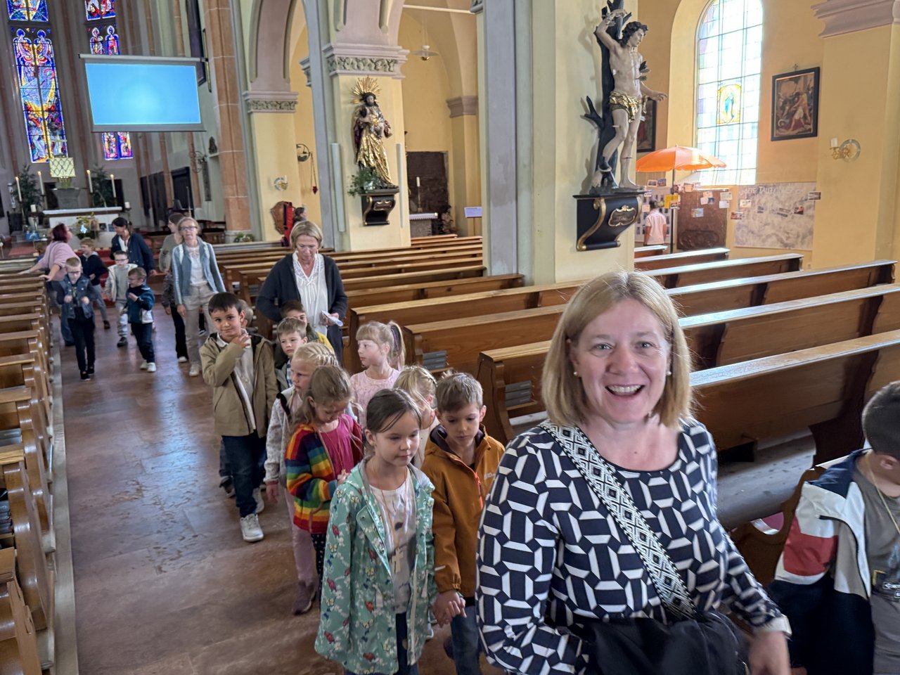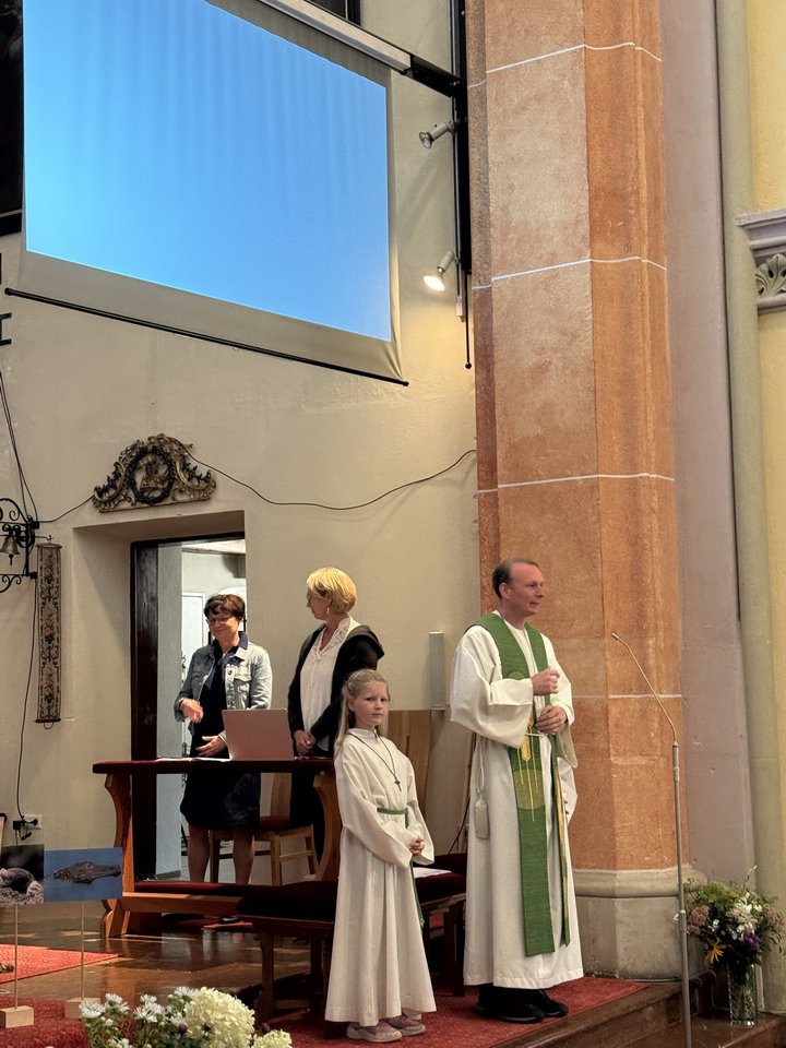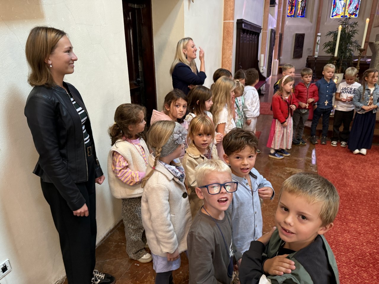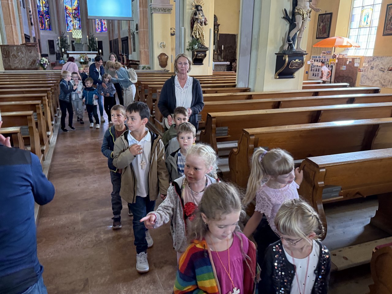 Der Gottesdienst wurde musikalisch begleitet und durch viele schöne Lieder lebendig gestaltet. Besonders feierlich war der Moment, als unser Herr Pfarrer die Vorschulkinder und Erstklässler segnete. Als Zeichen für den Start in einen neuen Lebensabschnitt erhielten sie ein kleines Geschenk – ein Kreuz zum Umhängen, das sie daran erinnern soll: Jesus geht mit dir.