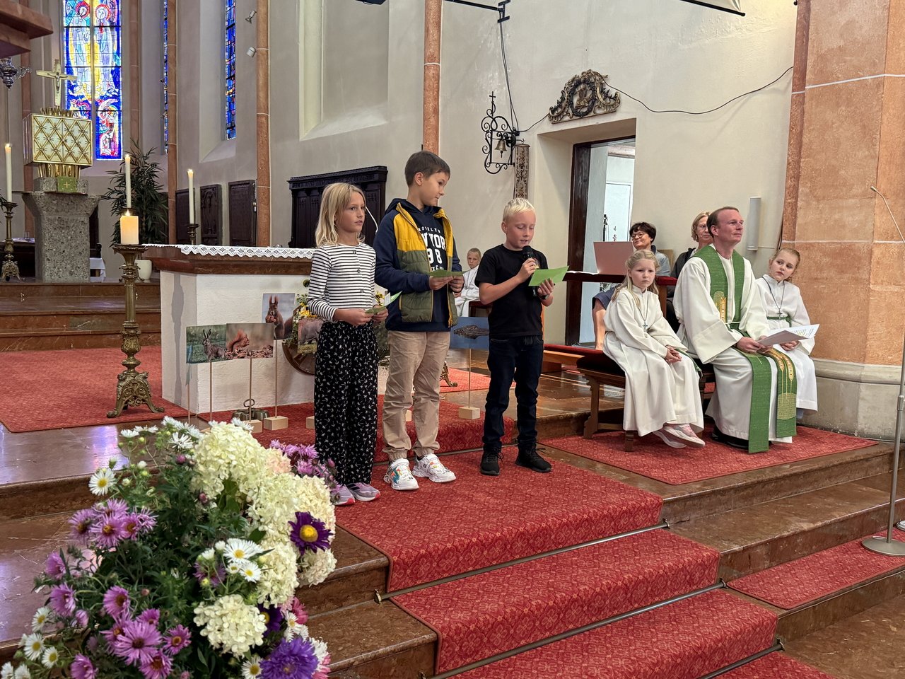 Am Freitag um 10 Uhr fand in der Stadtpfarrkirche Radstadt unser gemeinsamer Schulanfangsgottesdienst statt. Pfarrer Roman Eder begrüßte die Schülerinnen und Schüler der Volksschule Radstadt sowie der Sonderschule Radstadt herzlich und gestaltete mit ihnen einen stimmungsvollen Auftakt ins neue Schuljahr.
