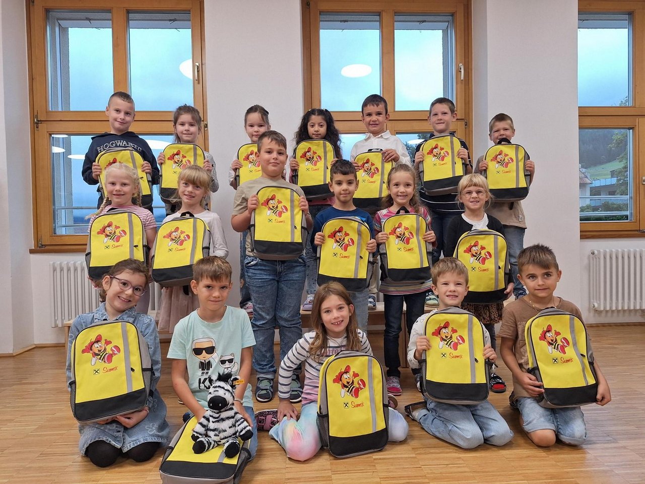 Die Warnwesten und einige weitere Überraschungen im Inneren der Rucksäcke erfreuten so manches Klassentier- und Kinderherz und sorgten für viel Gelächter, als die Fledermaus mit einer Warnweste und hocherfreut über ihre neu gewonnene Sichtbarkeit, losfliegen wollte. Wir bedanken uns bei der Raiffeisenbank, die auch dieses Jahr wieder für die Sichtbarkeit unserer Kinder im Straßenverkehr sorgte.