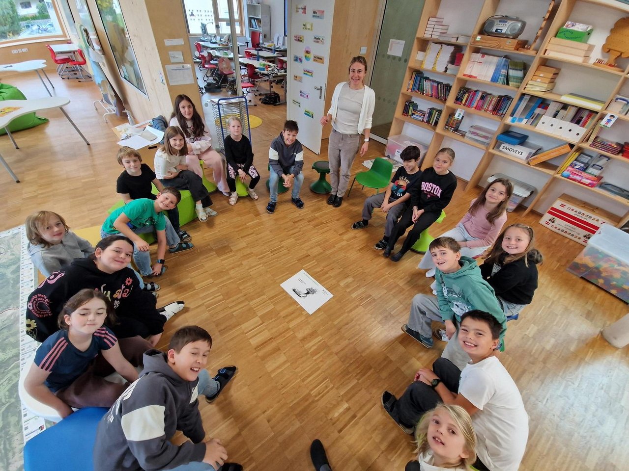 Wir freuten uns über den erneuten Besuch von Sophia vom Haus der Natur. Dieses Mal ging es um das Thema „Ökologischer Fußabdruck“ – also darum, wie unser Verhalten die Natur beeinflusst. Sophia zeigte uns, dass kleine Dinge eine große Wirkung haben: Licht ausschalten, regionale Produkte kaufen oder Dinge wiederverwenden – all das hilft unserer Umwelt.