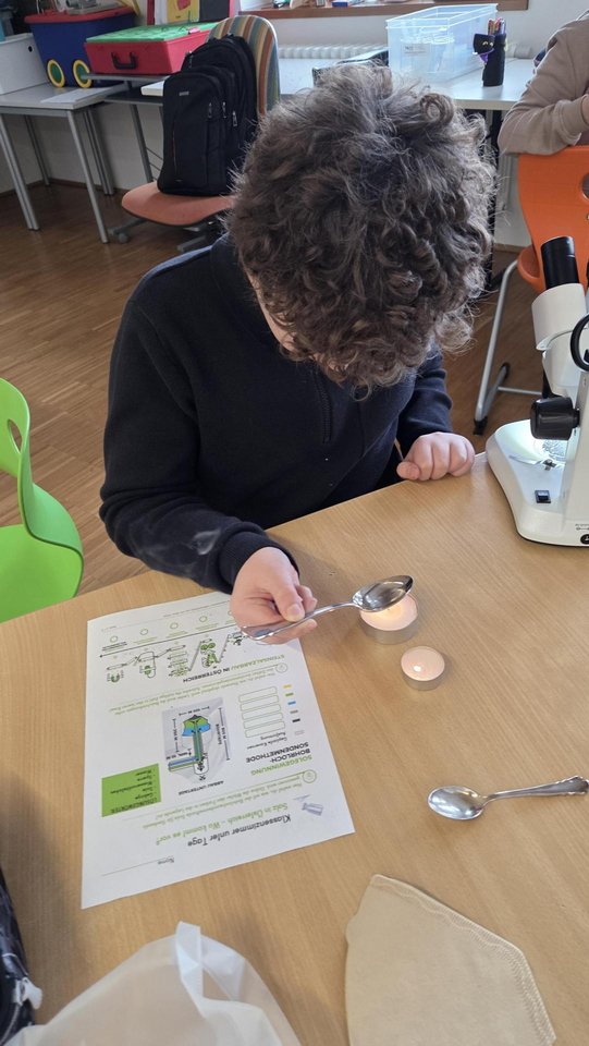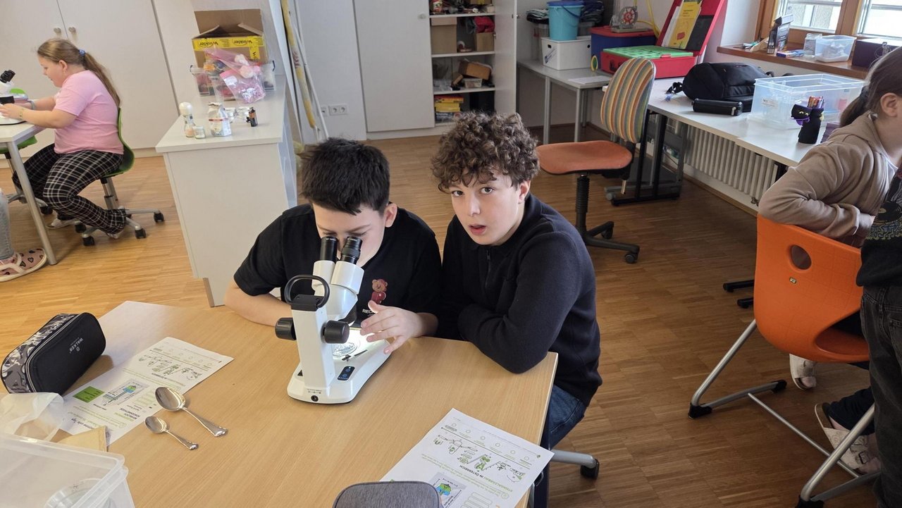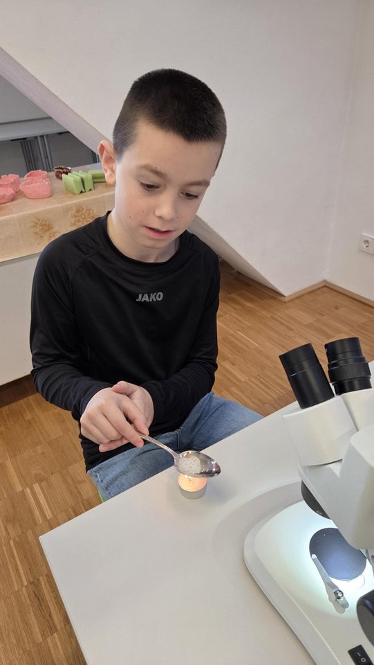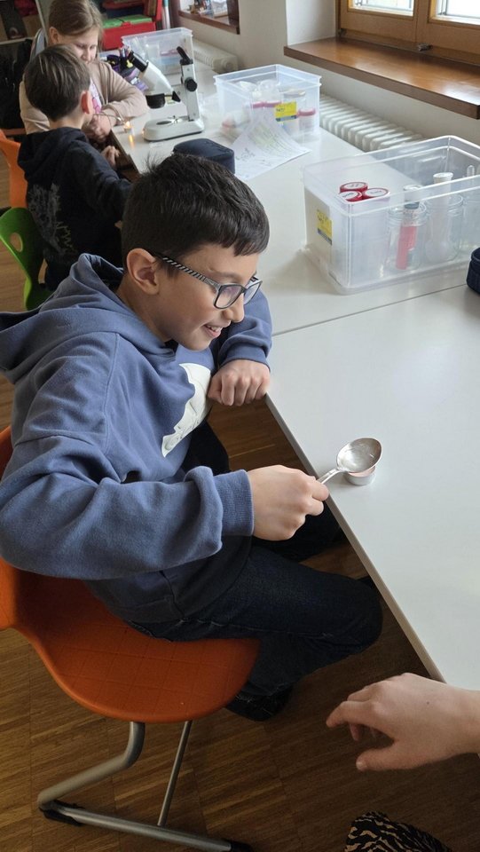 Ein besonderes Erlebnis war das Betrachten von Salz unter dem Mikroskop, bei dem die Kinder die unterschiedlichen Kristallformen entdeckten. Außerdem lernten sie verschiedene Salzarten kennen, darunter Siedesalz, Steinsalz und Meersalz, und erfuhren, wie sie entstehen. Durch eigenes Experimentieren wurde das Thema anschaulich und lebendig vermittelt.