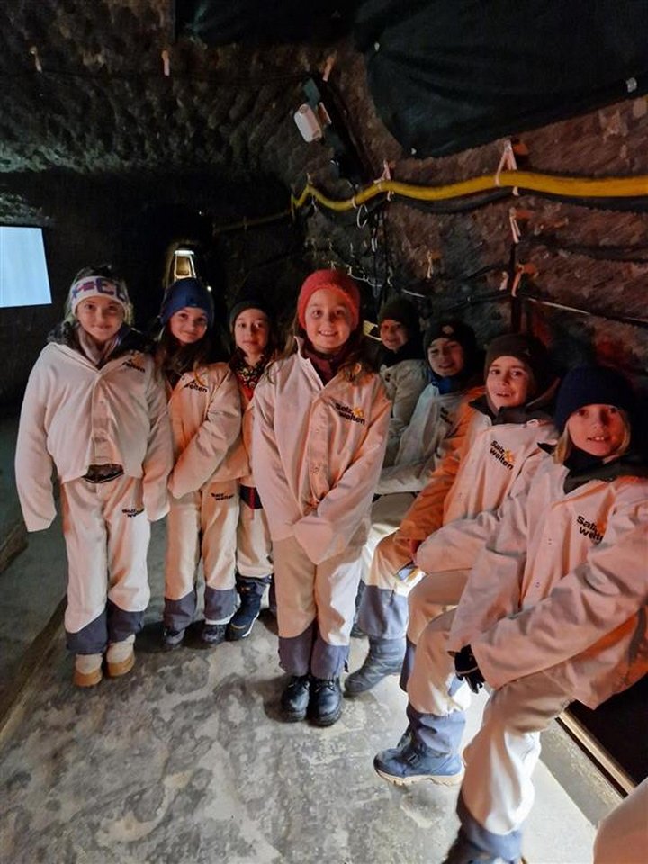 Die 4. Klassen unternahmen einen spannenden Lehrausgang in die Salzwelten Hallein am Dürrnberg, eines der ältesten Schaubergwerke der Welt. Schon die Fahrt mit der Grubenbahn in den Berg hinein war für viele Kinder ein besonderes Erlebnis. Unter Tage erfuhren die Schülerinnen und Schüler viel über die Geschichte des Salzabbaues, die Kelten und die Bedeutung des „weißen Goldes“ für die Region Salzburg.